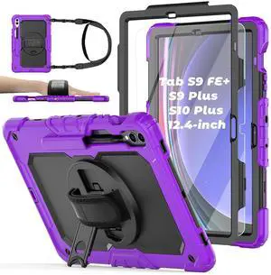 BASE MALL Case for Samsung Galaxy Tab S10 Plus/ S9 FE Plus/ S9 Plus 5G Tablet 12.4'', Shockproof Protective Cover with [Tempered Glass Screen Protector], Stand, Shoulder Strap & S Pen Holder (Purple)