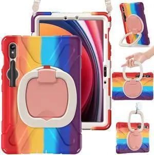 BRAECN Rugged Case for Samsung Galaxy Tab S10 Lite/S10 FE 2025 & S9 FE/S9/S8/S7 10.9"/11" ^^ Protective Silicone Cover with 360Swivel Handle/Kickstand, Shoulder Strap & S Pen Holder, Colorful Red