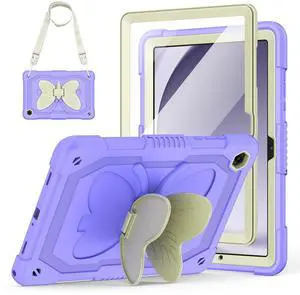 Hogenl Cover for Samsung Galaxy Tab A9+ Plus Case with Screen Protector, Galaxy Tab A9+ 11 inch 2023 Released with Butterfly Stand Shoulder Strap Shockproof case for Kids Girl, Purple