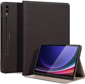 Thryxop Genuine Leather Case for Samsung Galaxy Tab S10 Plus/S9 Plus/S9 FE+ 12.4 Inch with Pencil Holder ^^ Slim Protective Cover with Adjustable Stand, Auto Wake/Sleep, Premium Leather ^^ Dark Brown