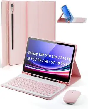 TUNKARMOR Case Keyboard for Samsung Galaxy Tab S10 Lite / S10 FE / S9 FE / S9 / S8 / S7 10.9"/11" Built-in Pencil Holder with Mouse (Pink)