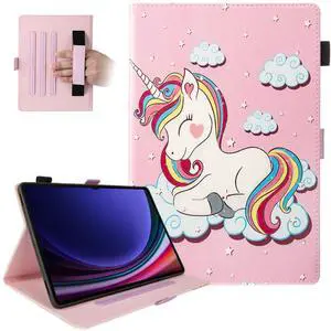 Dteck for Samsung Galaxy Tab S10+ Plus 2024/S9+ Plus 2023/S8 Plus 2022/S7 FE 2021/S7 Plus 2020 Case with S Pen Holder, Shockproof Stand Smart Folio Protective Cover with Auto Sleep/Wake,Pink Unicorn