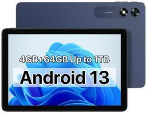 10.1 inch Tablet, 64GB ROM, 1TB Expandable, 6000mAh Battery, Wi-Fi 6, Quad-Core, 2MP+8MP Dual Camera, Bluetooth, IPS Screen