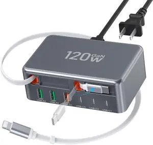345W USB C Charger 10 in 1 Retractable Wall Charger with 2 Cables,GaN 6 USB C Charging Station Phone Charging PD Laptop Charger Adapter for MacBook Pro/Air,DELL,iPhone17/16/15,Galaxy S24,Android etc- Brand: GKUTW