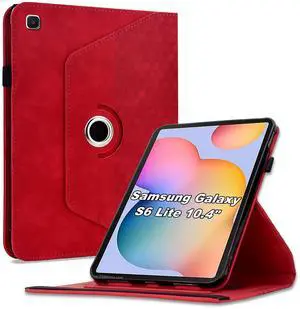 Varohix Cover for Samsung Galaxy Tab S6 Lite 10.4 Case 2024 2022 2020(SM-P620/P625/P613/P619/P615/P610),360 Degree Rotating PU Leather Folio Protective Cover with Card Holder&Shoulder Strap, Red