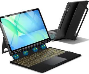JUQITECH Trackpad Keyboard Case for Samsung Galaxy Tab S11 11 Inch 2025, Soft Protector Case Kickstand Magnetic Detachable Wireless 7 Colors Backlit Keyboard Cover with S Pen Slot for SM-X730 SM-X736B