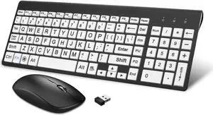 HXMJ-Wireless Large Print Keyboard and Mouse Set with USB Receiver| Quiet Scissor Switch | for Seniors and Visually Impaired Low Vision Individuals-White
