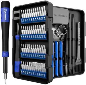 Small Precision Screwdriver Set 64-piece with Torx, Triwing, Pentalobe, Electronics Repair Tool Kit for Computer, PC, Laptop, Macbook, Tablet, Phone, PS5, XBOX, Switch, Glass, Ring DoorbellBrand: STREBITOType: Torx, Torx security, Pentalobe, Triwing, Phillips, Flathead, Hex, Triangle, U-type, Square, SIM, MID, OVAL, Gamebit, Nut driverSize/Dimensions: 2.1 cm x 16.9 cm x 21.3 cmColor/Finish: BlueModel #: 142815094286