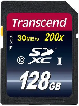 Transcend 128GB SDXC Class 10 Flash Memory Card Up to 30MB/s (TS128GSDXC10E)