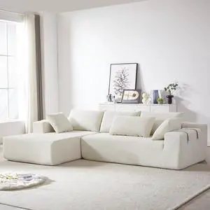 [VIDEO/New] Deep Seat Sectional Sofa, Comfortable Cloud Sofa with Ottomans, loveseat Sofa, 85.8''Modern Corduroy Upholstered Sectional Sofa for Living Room, Apartment, Studio, Office (Beige).