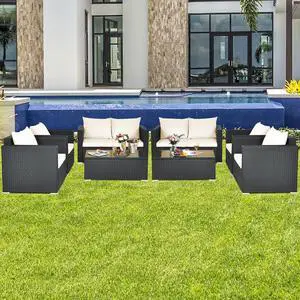 Costway 8 PCS Wicker Sofa Rattan Furniture Set Patio Furniture w/ Storage Table White
