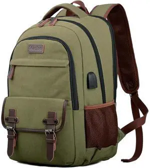 Mactso Canvas Travel Laptop Backpack for Men Women, Business Work Rucksack College Computer Bag Fits 17.3 Inch Notebook,Bookbag with USB Charging Port (Coffee, 17.3 Inch)