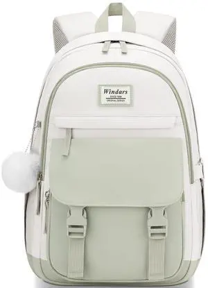 WINDARS School Backpack for Teen Girls, Cute College Backpacks for Women Students Aesthetic Bookbag Large 15.6 Inch Laptop Bag Middle School Travel Back Pack (Green Beige)