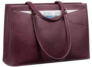 LOVEVOOK Laptop Bag for Women,15.6 Inch Laptop Tote Bag for Women,Vintage Leather Work Tote Bags Computer Teacher Bag,Waterproof Business Bag Office Briefcase