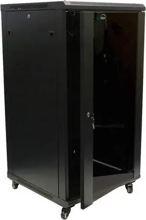 22U 19 Adjustable Depth Server Rack Support Up to 1700LBS Floor Standing 4 Posts Construction with Load-Bearing Casters Universal for Network Equipment Black