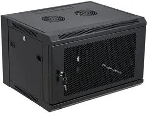 6U Wall Mount Server Cabinet with A Lockable Front Vented Door, Cooling Fans, Removable Side Panels - 45cm Depth, 19" Network Rack Including Full-Size Rack Shelf for IT Equipment