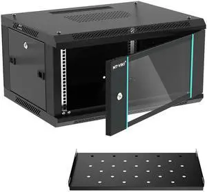 6U Wall Mount Server Cabinet with A Lockable Front Vented Door, Cooling Fans, Removable Side Panels - 45cm Depth, 19" Network Rack Including Full-Size Rack Shelf for IT Equipment
