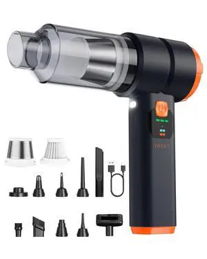 Handheld Vacuum Cordless, Car Vacuum Cleaner with Brushless Motor, Strong Suction Vacuum & Compressed Air Dusters with LED Light, Wireless Mini Portable Hand Vacuum Blower for Home, Pet (Black)