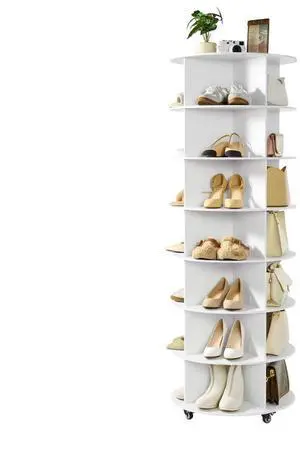 VEVOR 7 Tiers Rotating Shoe Rack Tower with Wheels, Movable 360° Spinning Carousel Display, Lazy Susan Organizer Closet Shelf for Living Room, Entryway, White