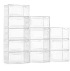 Shoe Storage Boxes 6 Pack Stackable Shoe Boxes US Size 13 Transparent White