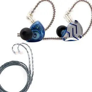 erjigo KZ ZSN Pro Dynamic Hybrid Dual Driver in Ear Earphones Detachable Tangle-Free Cable Musicians in-Ear Earbuds Headphones (Blue Without Mic)