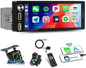 Single Din 6 Inch Incell Touch Screen Car Stereo Wireless CarPlay Android Auto with Backup Camera Mirror Link Bluetooth FM USB EQ SWC