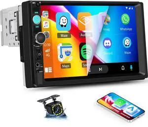 Single DIN Car Stereo with Wireless CarPlay & Android Auto ^^ 6.86" 1280x480 HD Touchscreen Car Radio ^^ Bluetooth 5.0, EQ, Backup Camera, SWC, FM Radio, 2-USB Fast Charging, TF Card