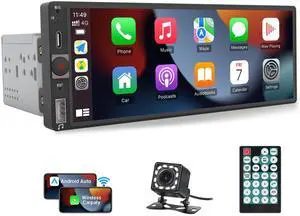 Single Din Car Stereo with Apple Carplay, 6.86 HD IPS 1280480 Single Din Touchscreen Radio,Bluetooth 5.2 Car Radio,FM,Type-C,USB Port,Backup Camera,Android Auto