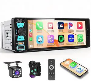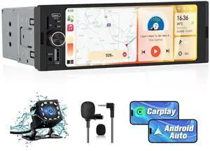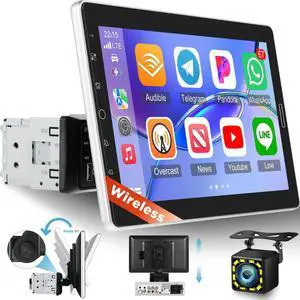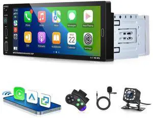 Wireless CarPlay Single Din Car Stereo,5.1 Bluetooth Car Radio AM/FM/RDS,7-Inch 1080P Manual Flip-Out Touch Screen,Android Auto,10EQ,12LED IP69k Backup Camera,GPS,SWC,MirrorLink,SWC,Fast Charging USB