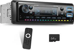 Single Din Car Stereo Bluetooth 5.0 Audio Radio with 64G Card FM Receiver Digital Music Radio MP3 Player Support AUX Input USB Playback & Charging Colorful Button Light