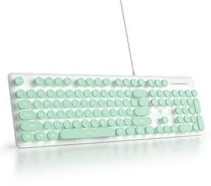 Computer Keyboard Wired, Plug and Play USB Retro Round Typewriter Keyboard, Full Size Wired Keyboard with Foldable Stands for Laptop and Office PC- Purple Colorful