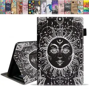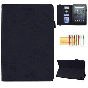 Case for Fire 7" (12th Generation, 2022 Release), Techcircle Mandala Embossed PU Leather Folio Stand Soft TPU Slim Elastic Band Protective Cover with Card Slots+Pen Holder, Black