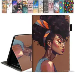 FVAENDHIO Case for Kindle Fire 7 Tablet (9th/7th Generation, 2019/2017 Release, 7" Display) with Card Slot & Auto Sleep/Wake - Slim Folding Stand Folio Cover, African American Girl