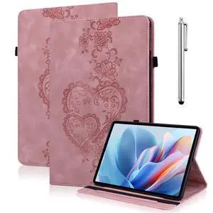 TUOLISG Case for Lenovo Idea Tab 11" 2025/ Tab M11 11" 2024 Case (TB336FU/TB330FU), Embossed Lace PU Leather Flip Folio Stand Cover with Elastic Band Card Slots Pen Holder- Brown