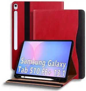 TIPOYOROOS Case for Samsung Galaxy Tab S10 FE Plus 13.1 Inch 2025 (SM-X620/SM-X626B) Smart Cover with Pocket & Pencil Holder, Business PU Leather with Card Slot, Red