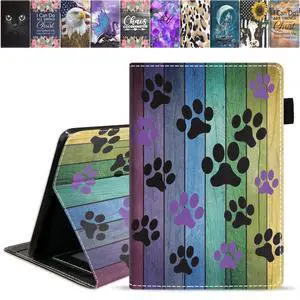 DEHJYYIJUY Case for Kindle Fire HD 10/Fire HD 10 Plus Tablet (11th Generation, 2021 Release), Premium PU Leather Cover with Card Slot & Pencil Holder, Rustic Rainbow Woodgrain Dog Paw Print