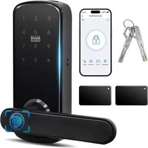 DS10 Keyless Entry Door Locks - Keypad Lock with Handle Set, Fingerprint Deadbolt, Smart Locks for Front Doors, Auto-Lock & One Touch Locking, 2 Keys, Easy Installation - Matte ack