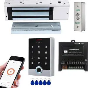 in and Out Single Door Security Locking System Access Control with Waterproof RFID Keypad Reader+600LBS Magnetic Lock Power Supply Box + Cards/Key fobs (Phone APP remotely Open Door)