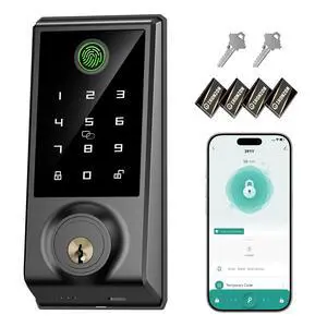 Auto-Lock Bolt, Fingerprint Keyless Entry Door Smart Bluetooth Deadbolt Replacement, Backlit Keypad, IPX5 Weatherproof, in-App History and Scheduled Access, BHMA, UL 20-Min Fire Rated