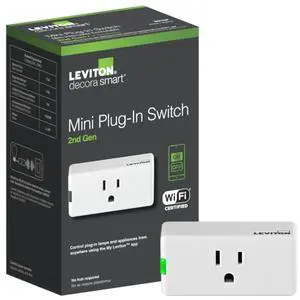 Decora Smart Plug, Wi-Fi 2nd Gen, Works with Matter, My Leviton, Alexa, Google Assistant, Apple Home/Siri & Wire-Free Anywhere Companions for Switched Outlet, D215P-1RW, White