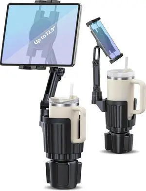 Profortop 2-in-1 Cup Holder Tablet Mount Expander, 2-Section Foldable 15" Height Adjustable Arm & 360 Rotation, Universal Fit for iPad, iPhone, All Smartphones and Most Bottles for Car SUV Truck