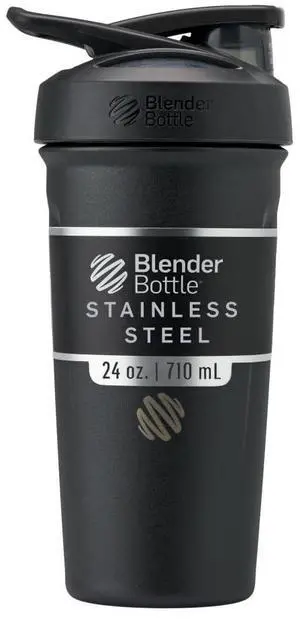 Strada Shaker Cup Insulated Stainless Steel Water Bottle with Wire Whisk, 24-Ounce, Black