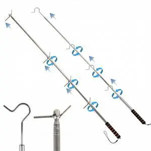 Extendable Smoke Detector Tester Pole - 13.8-60.5" Longer Reach with 2 Interchangeable Heads for Smoke Alarm & High Hooks - Stainless Steel Rod for Safe Ladder-Free Inspections - 1 Pack