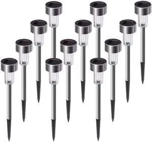 Solar Lights Outdoor, 12Pack Stainless Steel Outdoor Solar Lights - Waterproof, LED Landscape Lighting Solar Powered Outdoor Lights Solar Garden Lights for Pathway Walkway Patio Yard & Lawn-Cool White
