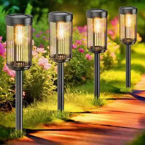 Solar Pathway Lights, 8 Pack LED Solar Lights Outdoor Waterproof, Glass Metal Garden Lighting for Yard Path Landscape Lawn Walkway Driveway, 3000K