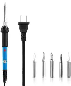 60W Adjustable Temperature Soldering Iron Kit - 9-in-1 With 5 Tips, Solder Wire Stand for Soldering and Repair