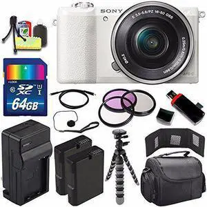 Sony Alpha a5100 Mirrorless Digital Camera with 16-50mm Lens (White) + Battery + Charger + 64GB Bundle 6 - International