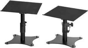 suptek Clamp-on Speaker Stand Desk Mount Set, Height Adjustment, Tilt, Swivel, 9.6 x 8.8 inch Trays, Universal Audio Holders for Computer and Bookshelf Speakers, Elevated Sound, 2 Pack, Black, SDM001B