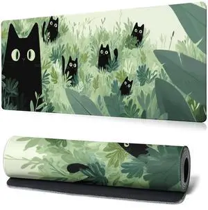 Black Cat Gaming Mouse Pad Large Desk Mat Extended Keyboard Mouse Pad Anime Mousepad with Non-Slip Base and Stitched Edge Mouse Mat Desk Pad 31.5 x 11.8 Mouse Pads for Desk Home Office Gaming