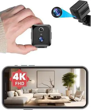 Mini Security Camera, WiFi or No WiFi Optional, 4K Spy Camera, Small Cameras for Home Security with Pre-Installed 32GB TF Card, Wide-Angle, Night Vision, for Indoor Outdoor(Black)